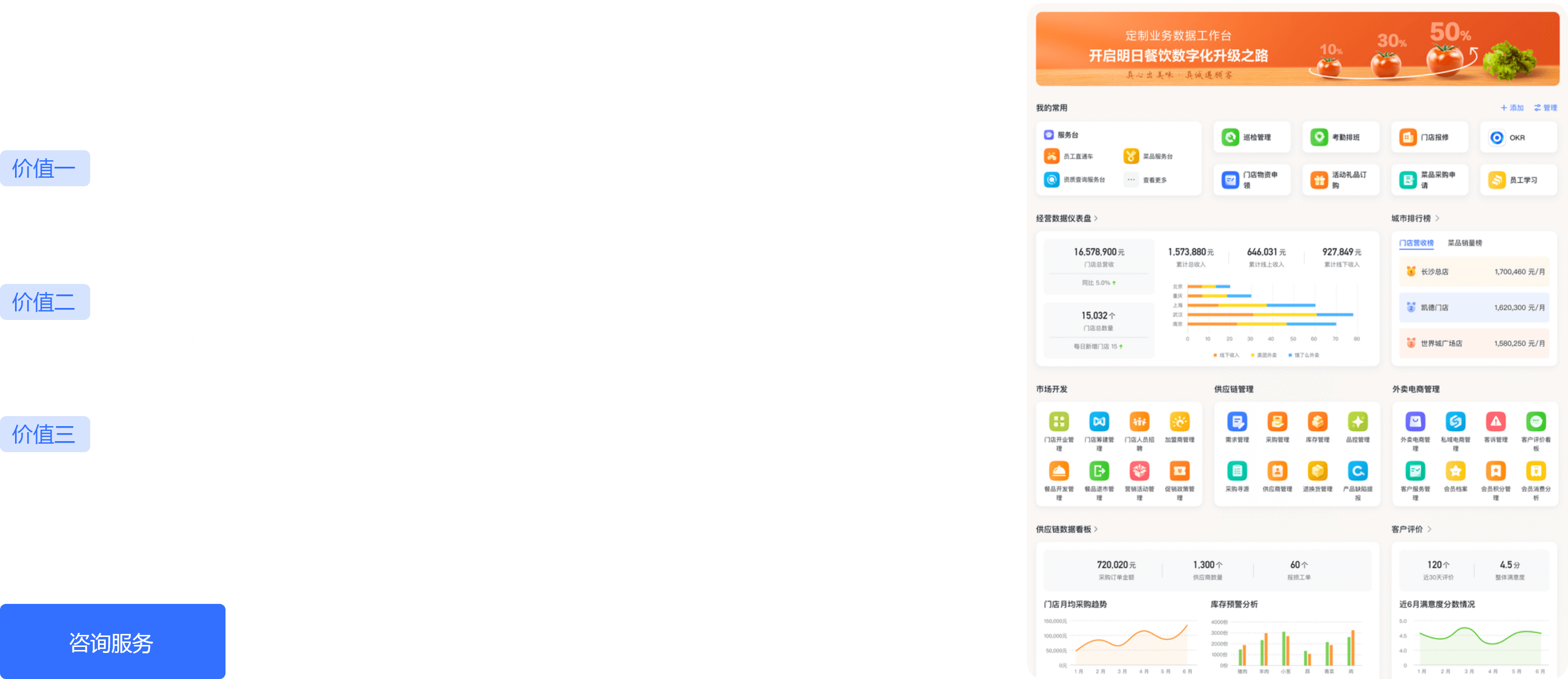 消費(fèi)零售定制化工作臺(tái),讓工具釋放生產(chǎn)力,讓數(shù)據(jù)高效流轉(zhuǎn),讓你的工作效率持續(xù)提升。