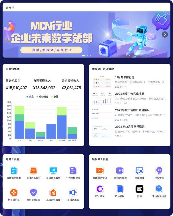 餐飲電商消費(fèi)零售律所文娛金融MCN制造業(yè)
